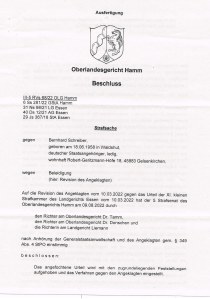 Und auch bei der Revision gegen die Entscheidung des LG Essen befürchtete ich das Schlimmste. Zwar hatten wir reichlich Gründe angeführt, aber noch immer gilt der Spruch des Volksmundes,